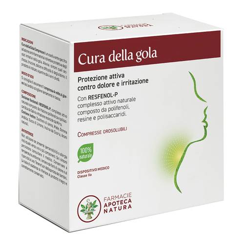 Cura della golaDescrizione Dispositivo medico specifico per gli stati irritativi della gola. È indicato per il trattamento del mal di gola che può essere causato da virus, batteri, allergeni o dal contatto con agenti esterni irritanti (fumo, smog, polvere). Il prodotto è adatto anche negli stati di raffreddamento dove le secrezioni nasali, scendendo nella gola, possono essere causa di irritazione. Dai 6 anni di età. Cura della gola compresse, per il suo meccanismo d’azione, può essere utilizzato anche in associazione ai trattamenti farmacologici prescritti dal medico. Modalità d'uso Si consiglia di assumere 1 compressa 4 volte a...
